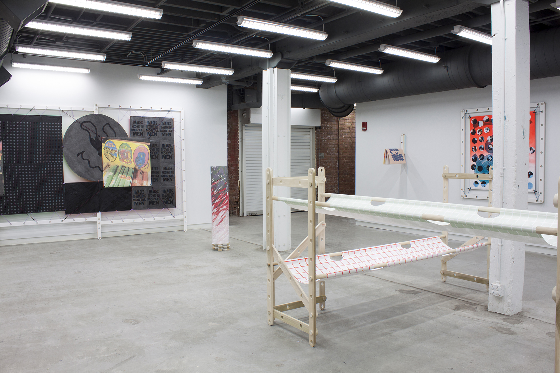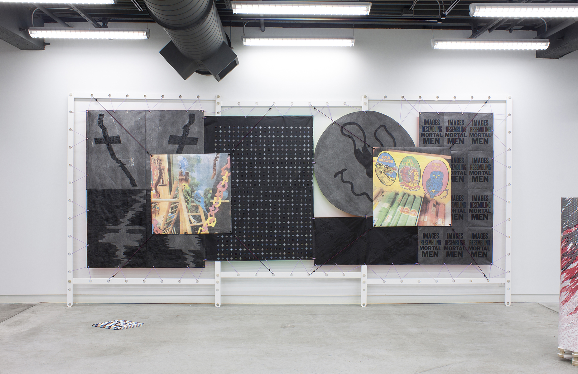 In Shadows Solo exhibition at the Bolivar Art Gallery at the University of Kentucky in Lexington, Kentucky, 2019. This body of work explores themes of death and resurrection, language and symbol, digital identity, slavery and captivity, vice, and facade. This work explores new materials including Tyvek, paracord, and the engineering of a modular framing system. The framing and bungee and paracords were all custom designed. |