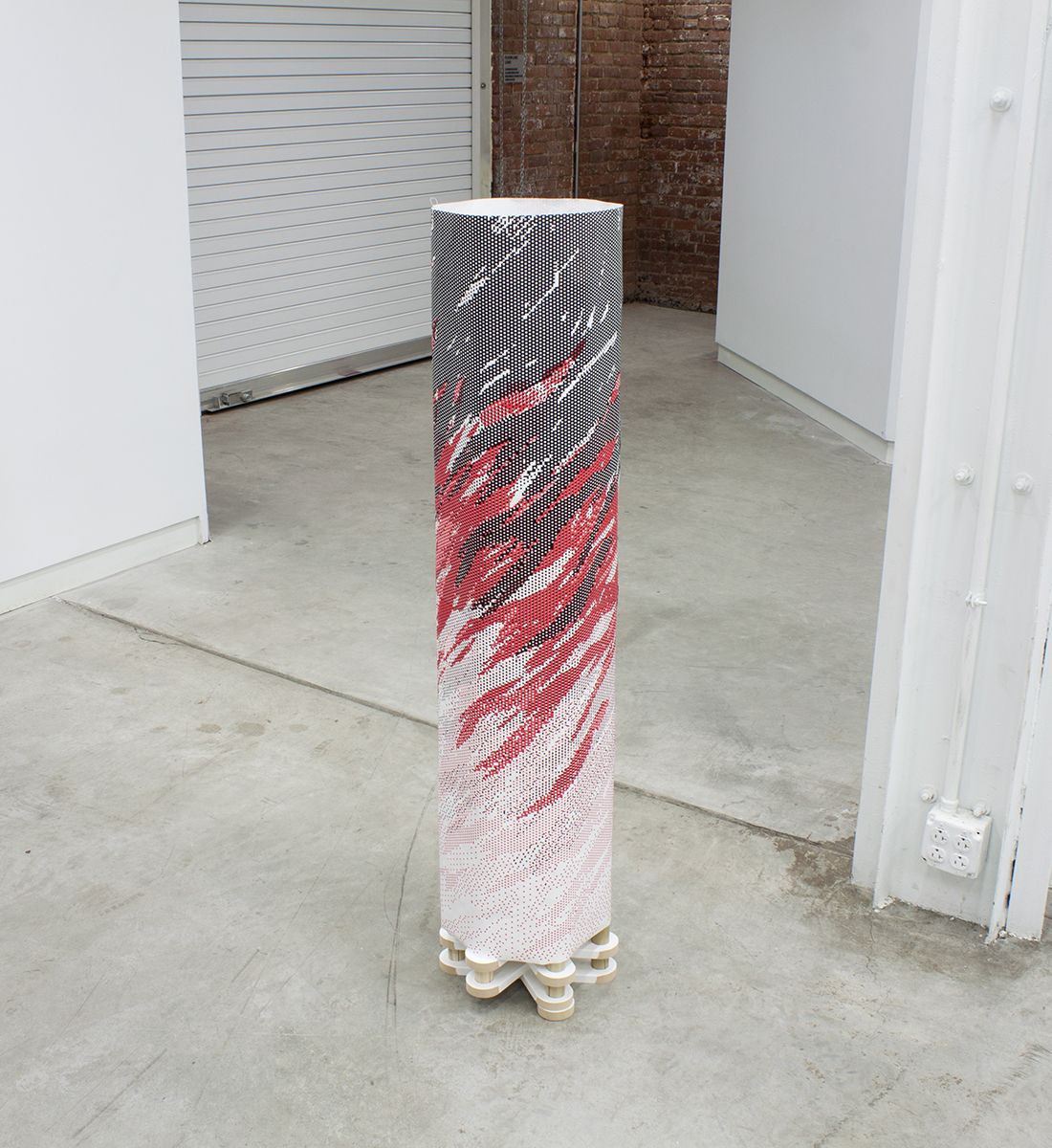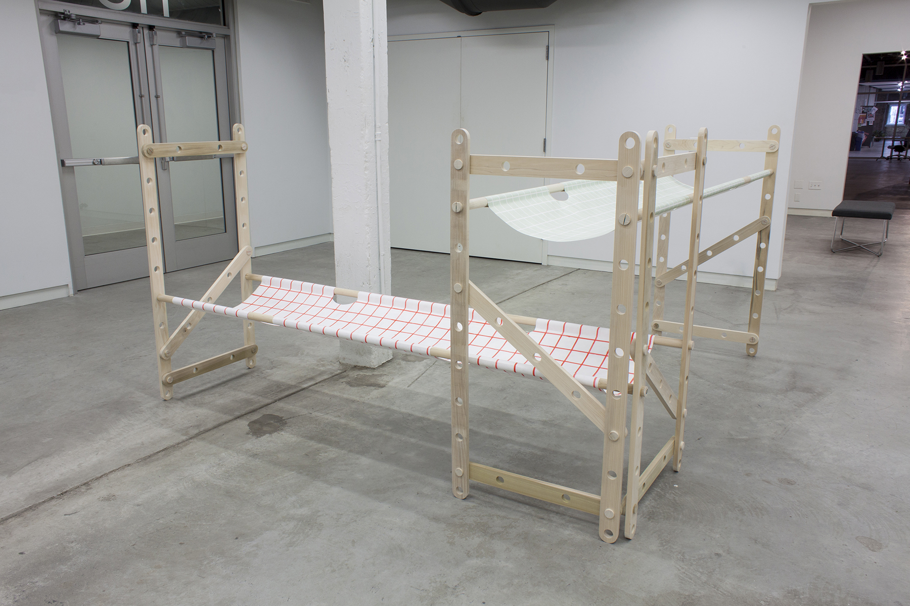 Digital Fire Two-color screenprint on stitched Tyvek with Poplar and MDF structure, 52" x 14", 2019. |