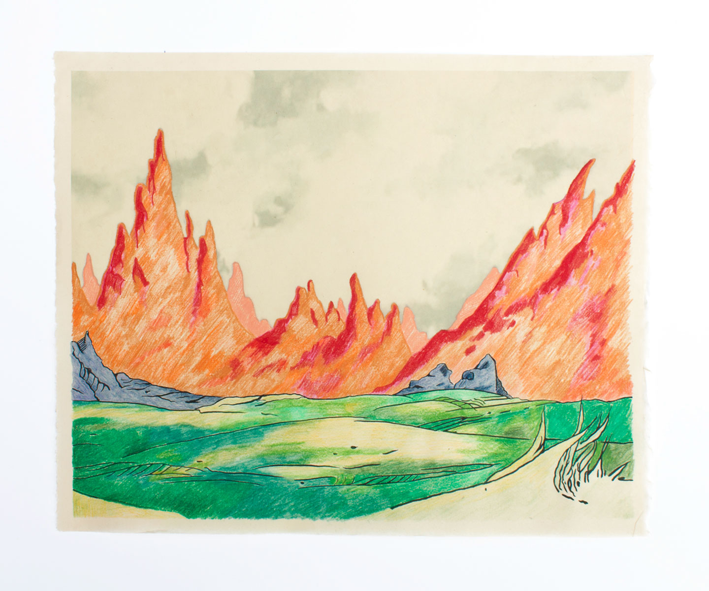She Demon of Phantos, Digital print, colored pencil, and ink on Kitakata, 16” x 26”, 2014.